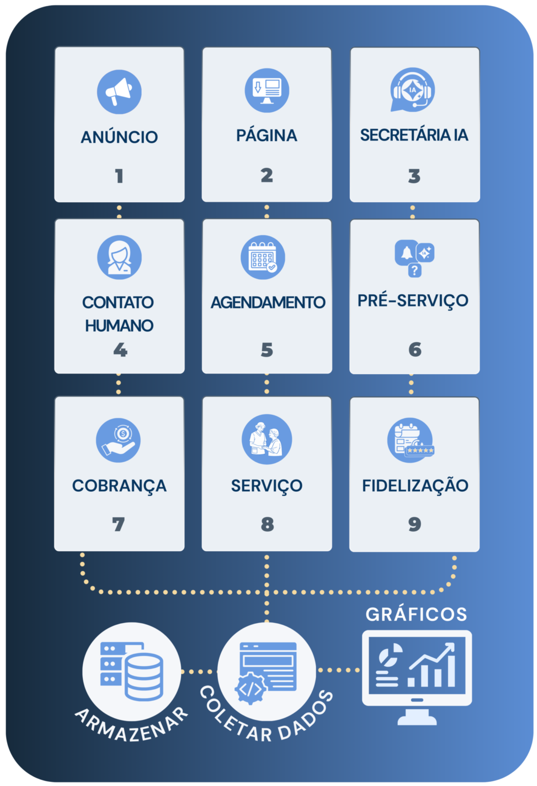 Estruturamos seu funil por serviço oferecido, organizamos seus dados e elevamos sua previsibilidade financeira com estratégia, tecnologia e inteligência comercial.